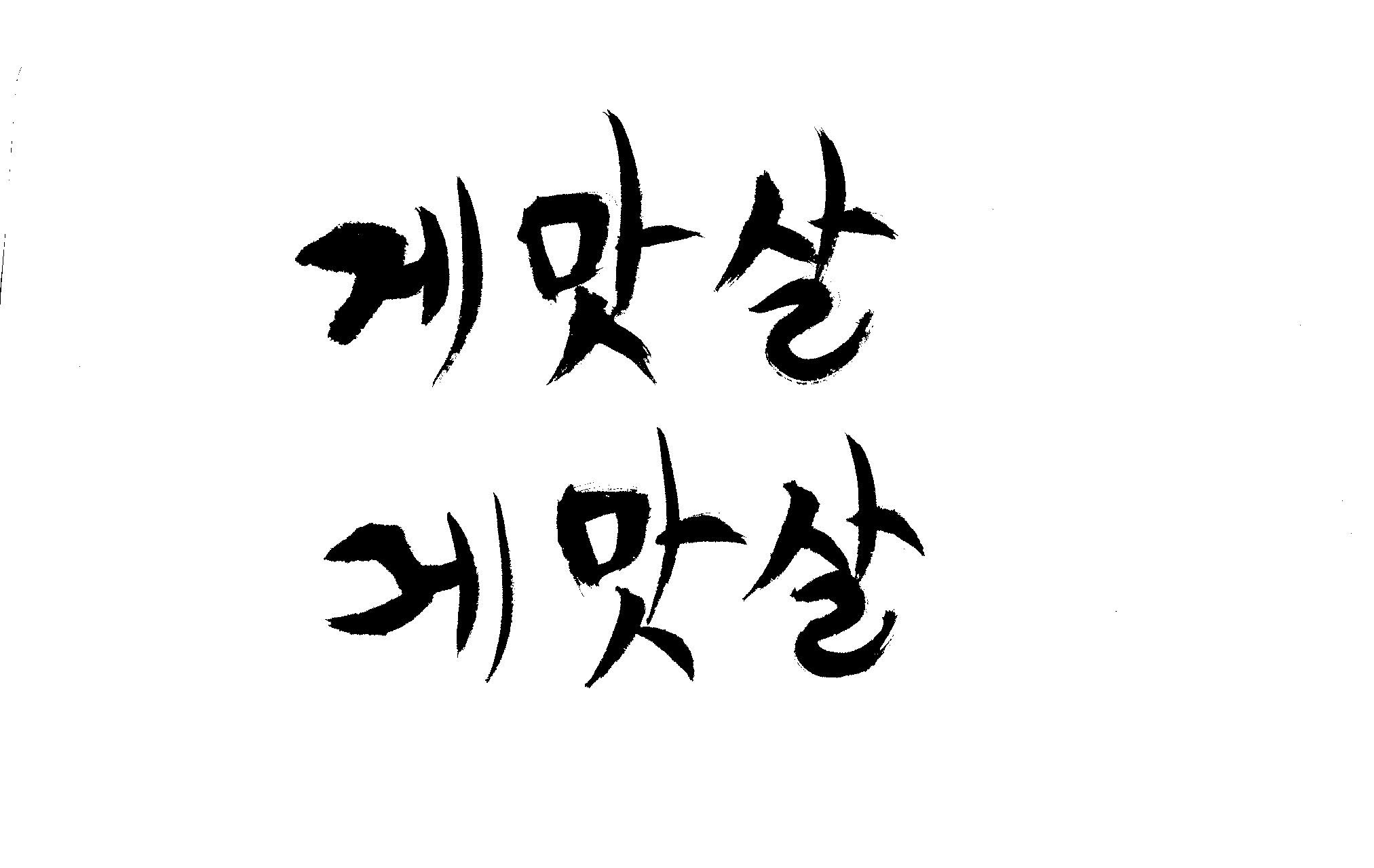 캘리 부탁드립니다. 김철호 일반 0 6449 2009.01.30 09:49 > > 제가 이리저리 써보기도 했으나 너무 이상해서 도움을 받고자 합니다. > 단어는 '게맛살' 입니다. 패키지디자인에 사용할 타이틀입니다. > 급한사항이니 부탁드립니다. 감사합니다. ^^ >